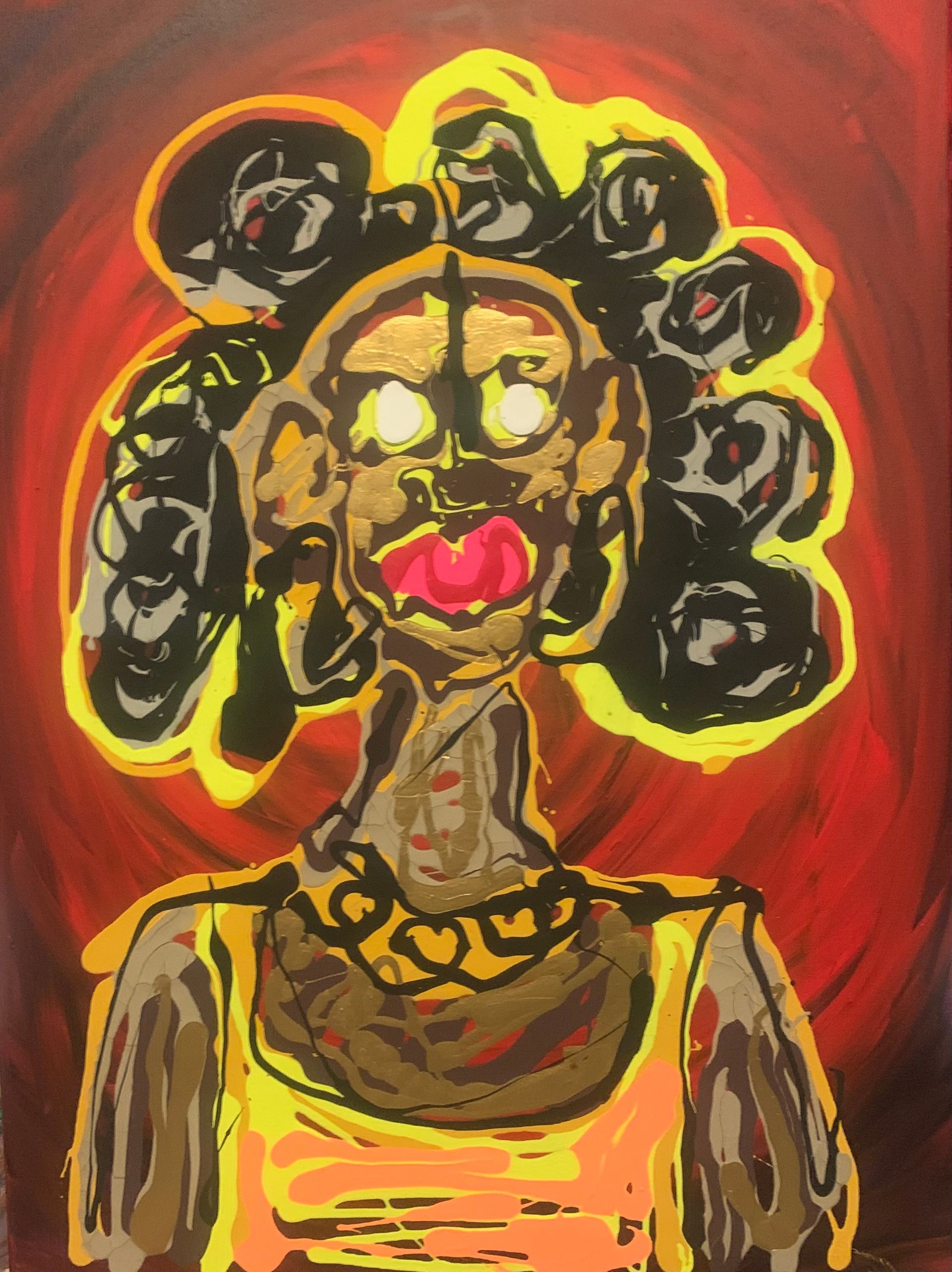 Journey through a world of painted upcycled art. With every stroke of the brush and splash of the paint, the importance in owning our place as art is revealed. The controlled chaos of splashes and drips adds a sense of movement and energy. Showing how art, like life, can be beautifully messy, unpredictable yet still divinely aligned. Each hue, shade, and blend serves as a language, conveying a multitude of emotions, narratives, and ethnicities. Through my diverse color palette, I aim to explore the intricate complexities of how art is in all of humanity, using colors to awaken feelings of self worth, existence, freedom and power.